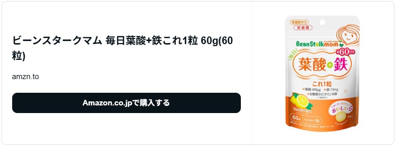 そのうちのひとつが雪印の妊娠・出産・育児特化ブランド「ビーンスタークマム」から出ている『毎日葉酸+鉄 これ1粒』。各種ビタミンB群と鉄分が含まれています。